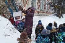 Кышкы чорда кошларга азык табуы авыр, аларга булышырга кирәклеге турында сөйләшеп участоктагы агачларга җимлекләр урнаштырдык./Во время беседы детям рассказали о жизни птиц в зимнее время. На участке повесили кормушки и наблюдали как птицы клюют зернышки.