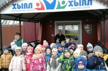 1. Балаларга күп хәрәкәтләнергә кирәк. Шуның өчен актив һәм тыныч эшчәнлек алыштырылып барыла. Уен алымнарын ничек урынлырак куллансаң, бала материалны шулхәтле ныграк үзләштерә. Фотода уртанчылар төркеме балалары “A cat and a mouse” (“Песи һәм тычкан”) уенын уйныйлар ./Детям нужно много двигаться. Поэтому обязательно чередуются спокойная и активная деятельность. Чем уместнее используются игровые приемы на занятиях, тем дети успешнее усваивают материал. На фото воспитанники средней группы играют в игру “A cat and a mouse”.