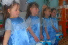 Балалар тәрбияче апалары белән бергә әниләренә матур бүләк әзерләделәр.