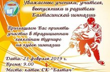 Уважаемые ученики, учителя, выпускники и родители Балтасинской гимназии, приглашаем Вас принять участие в традиционном хоккейном турнире на кубок гимназии.