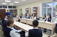 12нче ноябрь көнне 9нчы А сыйныфы укучылары Россия Эчке эшләр министрлыгының Казан юридик институты студентлары Гордеева Карина һәм Газимов Рәйхан белән очрашты.