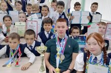 Для 4 классов прошла встреча с выпускником гимназии, - Мастером спорта по лыжным гонкам Сунгатуллиным Амиром.