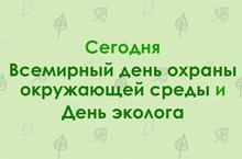 Сегодня День эколога и Всемирный день охраны окружающей среды.