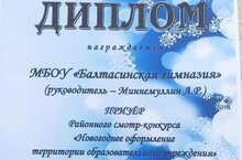 Балтасинская гимназия стала призером районного смотра-конкурса «Новогоднее оформление территории образовательного учреждения».