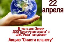 22 апреля 2020 года в честь дня Земли ДОО «Галстучная страна» и ШУС «Реал» запускают акцию «Очисти планету от мусора». Нужно очистить свой участок от мусора и опубликовать фото или видео с уборки в Instagram с хештегами #деньЗемли #Эковесна2020 #дообалтаси #Балтасинская гимназия #ДооГалстучная страна #ШУСРеал
