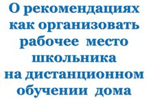 О рекомендациях как организовать рабочее место школьника на дистанционном обучении дома 20.04.2020