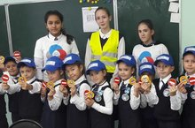 В рамках Месячника безопасности активисты гимназии раздали первоклассникам светоотражающие наклейки.