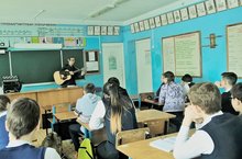 Сегодня в 8 «А» классе прошла встреча с преподавателем музыкальной школы Наилем Назиповичем. Встреча прошла в теплой атмосфере. Интересно прошла музыкальная викторина. Наиль Назипович показал, как одно произведение можно играть по-разному на баяне. А когда он взял в руки гитару и начал играть знакомые песни некоторые запели вместе с ним. На этой короткой встрече мы узнали много интересного о Наиле Назиповиче и мире музыки. Спасибо ему.