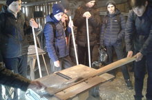 8 нче б сыйныфы укучылары тагын бер һөнәр иясенең остаханәсендә булдылар. Хәлиуллин Равил абый - балта остасы. Ул егетләргә агач эшкәртү станогы, аның эшләү үзенчәлекләре турында бик җентекләп сөйләде, такта эшкәртеп күрсәтте. Укучыларның үзләренә дә, куркынычсызлык кагыйдәләрен аңлатып, эшләп карау мөмкинлеге бирде. Егетләр исә, бик теләп, тактаны тигез итеп телеп, ышкылап һәм башка эш кораллары белән дә эшләп карадылар. Равил абый: "Һөнәрнең утта янмый, суда батмый торган хәзинә булуын аңласагыз иде", - дип, яшь буынга үзенең теләкләрен җиткерде.