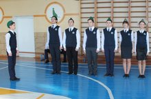 19 февраля в гимназии прошел традиционный смотр строя и песни. Четко и слаженно выступили на смотре обучающиеся 8а и 10 классов и были признаны победителями конкурса.