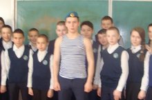 18нче феральдә 5а һәм 7б сыйныфы укучылары гимназиябезнең элекке укучысы Алексеев Руслан белән очрашты. Руслан, мәктәпне тәмамлагач, армия сафларында булып, ноябрьдә генә кайтты. Бу очрашуда ул армия хәлләре белән таныштырды, истәлекләре белән уртаклашты, туган ил алдындагы бурычны үтәргә барырга курыкмаска кирәклеген ассызыклады. Укучыларны бу очрашу бик тәэсирләндерде. Хәтта күңелләрендә шигырь туды.
