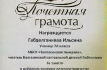 Соңгы елларда китапның урынын интернет яулый башласа да , укырга ярата торган балаларыбыз шактый әле. Андый укучылар өчен үзәк китапханә даими рәвештә төрле бәйгеләр оештырып тора. 7А сыйныфы укучысы Габделганиева И. “Ачык китап” дип исемләнгән иншалар конкурсында “Юбилярга хат” номинациясендә җиңсә, 8б сыйныфы укучысы Идрисов Б. “Яңа китапка бәяләмә” номинациясендә 3 урынга лаек булды. Аларга уңышлар телибез.