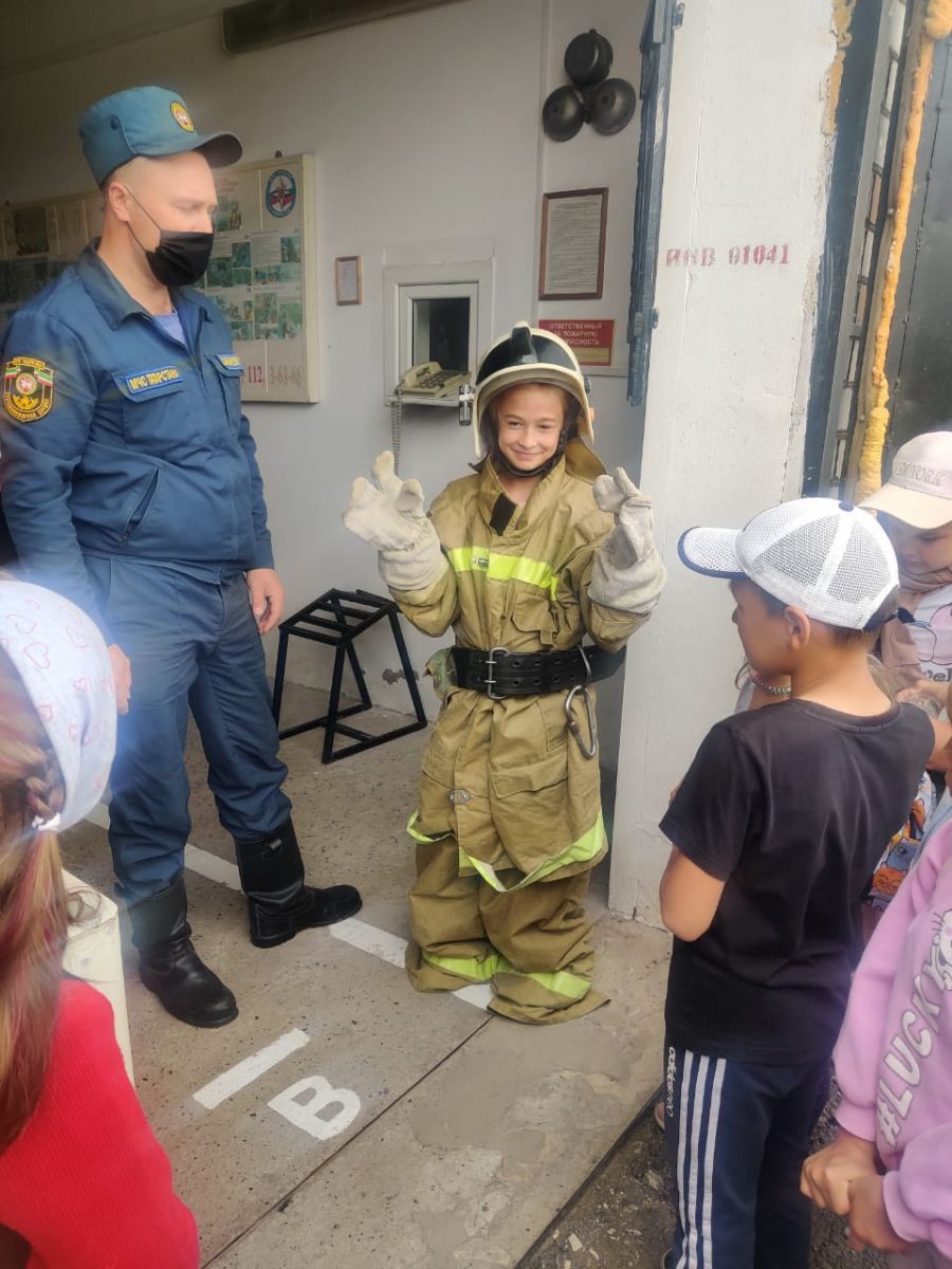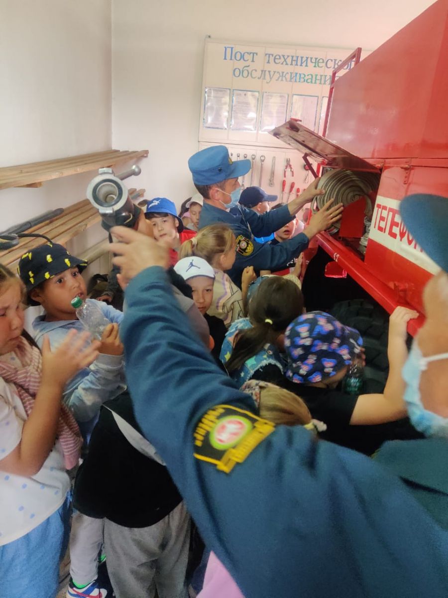 Лагерьгә йөрүче балалар Яңгул пожар сүндерү бүлеге эшчәнлеге белән таныштылар.