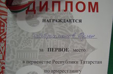 Татарстан беренчелегенә Түбән Кама шәһәрендә узган армспорт ярышында мәктәбебез укучылары да катнашты һәм уңышлы чыгыш ясадылар. 2002-2003 нче елгы егетләр һәм кызлар арасында узган ярышта Галимуллин Айнур, Багауетдинов Альфир һәм Хабибрахманов Русланнар призлы урыннарга ия булдылар. Алга таба да сынатмагыз егетләр!