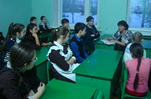 | У нас учат: | 19 учителей, 1 советник, 4 воспитателя, 1 совместитель/ 20 укытучы, 1 киңәшче, 4 тәрбияче, 1 совместитель |