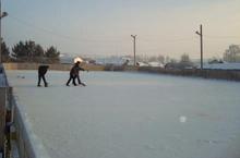 Мәктәп янында хоккей мәйданчыгы балалар тавышыннан гөр килеп тора.
