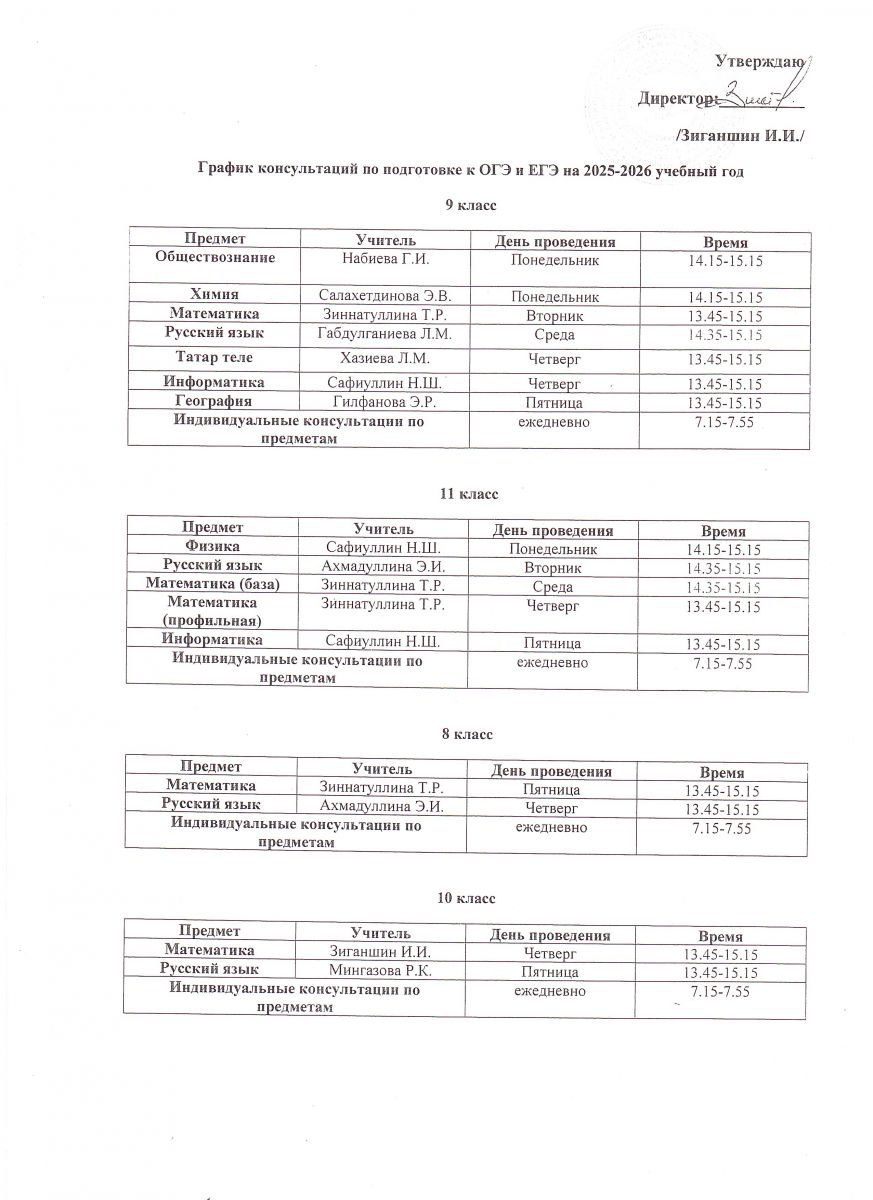 График консультаций по подготовке к ГИА на 2025-2026 учебный год