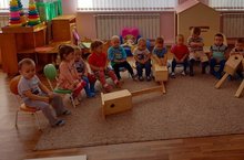 Дети раннего возраста принесли, сделанные папами скворечники.