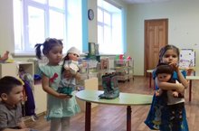 Сегодня мы начали проект "Әбиемнен серле сандыгы". К нам на занятие пришли кукла Гөлбикә и Гөмәр. Они познакомили детей с национальными одеждами, орнаментами.