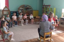 Бүген балалар белән суда үзеңне ничек тотарга кирәклеге турында сөйләштек. "Алдакчы Наил"хикәясен укыдык.