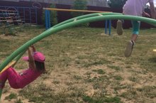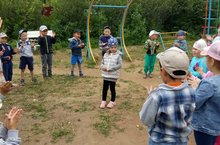 Спорт мәйданчыгында балалар физкультура белән бик теләп шөгыльләнәләр.