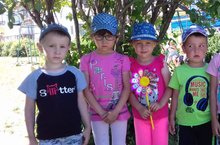 Кечкенәләр төркеме балалары балалар бакчасынын экологик сукмагы буйлап сәяхәткә чыктылар. Беренче тукталыш пион чәчәге.