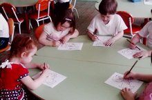Г.Тукай айлыгы кысаларында II кечкенәләр төркеме балалары "Кызыклы шәкерт" шигырь буенча Акбайны бик тырышып буядылар.