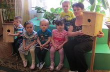 I кечкенәләр төркеме балалары әти - әниләр белән бергәләшеп сыерчыкларны каршы алалар. 15.03.2016