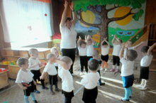 I кечкенәләр төркеме балалары белән без күңелле итеп иртәнге гимнастика ясыйбыз. 26.01.2016