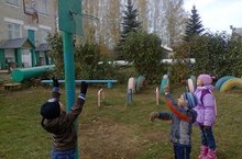 Мәктәпкә әзерлек төркемендә физкультура шөгыльләре саф һавада уздырыла. Балалр бик яратып баскетбол уенын уйныйлар. 16.10.2015
