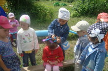 II кечкенәләр төркеме балалары белән "Мин һәм бакча" атналыгында бакчага экскурсия оештырдык. Бакчада үсүче җиләк - җимеш һәм яшелчәләр белән таныштык. 18.08.2015