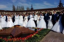 Парадтан соң яшь парларыбыз "Мәңгелек утка" чәчәкләр куйдылар . 12.05.2015