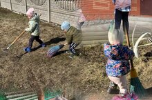 В рамках недели "Мир, труд, май" конкурса Эковесна дети группы раннего возраста приняли активное участие при уборке территории своего участка.