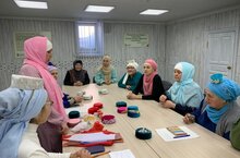 Буген Балтач узэк мэчетендэ «Ак калфак» хатын-кызларынын отчет жыелышында Аниса Шамилевна калфак тегу кунекмэлэре белэн уртаклашты.