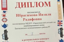 Бүген мәктәпкә әзерлек төркеменә йөрүче балалар: Ибрагимова Инзилә, Шигабутдинов Илдан, Фассахова Сәйдә, Галялетдинова Ясминә белән 2 нче балалар бакчасында инглиз теле буенча «I speak English» дип исемләнгән конкурста катнаштык. Балалар үзләренең талантларын күрсәтеп, беренче урын яуладылар. Зур рәхмәт аларга һәм әти-әниләргә! Молодцы!