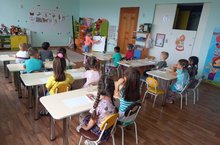 «Табындагы ипигэ дан» дип исемлэнгэн проект унаеннан, без балалар бн узебезнен колхоз гаражына бардык, комбайннар белэн таныштык. Аларнын ничек хэм нинди эш башкаруы турында сойлэштек. Балалар кызыксыну белэн кузэттелэр, сораулар бирделэр.