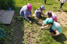 Дошкольникам прививаем элементарные навыки труда. Им нравится поливать грядки, убирать сорняки.
