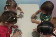 Балаларның сөйләм телләрен һәм кул чуклары хәрәкәтләренен осталыгын уңышлы төзәтер өчен, үз эшебездә ком терапиясе кулланабыз. Шөгыльдә ойрәнгән хәрефләрне комда язып карыйбыз.
