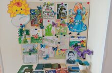 Дети средней группы организовали выставку рисунков, посаященную произведегиям Г.Тукаю.