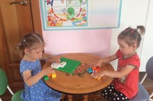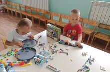 Дети с удовольствием играем в лего конструктор.