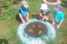 Бүген балалар белән тәҗрибә участогында эшебезне дәвам иттек, чөгендер, кыяр, укроп, петрушка, кабачки утырттык.