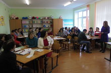 Заместитель директора по УР Ахметова Г.Р. провела урок с учителями на тему «Качество образования как условие успешности выпускника». В соответствии с темой урока, целью и задачами были выбраны формы организации учебной работы: индивидуальная, парная и групповая. На данном уроке применялся деятельностный метод обучения, обучение по Сингапурской методике обучения. На всех этапах урока участники были вовлечены в активную мыслительную и практическую деятельность, участникам надо было не только использовать уже имеющиеся знания, но и найти новый способ выполнения уже известного им действия. Этапы урока были тесно взаимосвязаны между собой, чередовались различные виды деятельности. Умственные действия опирались и подкреплялись практическими. Для каждого участника была создана ситуация успеха, что способствовало повышению мотивации и поддержанию познавательного интереса к учению. В ходе работы на уроке-педсовете перед участниками ставились такие проблемные вопросы как: повышение качества образования, подготовка к итоговой работе учащихся (мониторинг, ОГЭ, ЕГЭ).