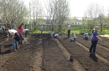 Мәктәптә укучылар, укытучылар, техник хезмәткәрләр бакчага язгы өмәгә чыктылар.
