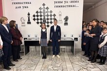 Гимназия директоры Зарипова Гөлсинә Фаил кызы армрестлинг буенча республика ярышларында 1 урын өчен Сагитзянова Дильбар бүләген тапшырды. -