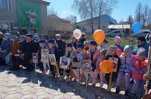 Торжественный митинг, посвященный Дню Победы.Память павших почтили минутой молчания и возложили цветы к памятнику погибшим героям.