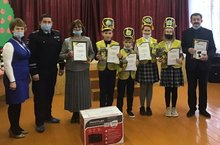 Награждение команды, занявшей второе место в конкурсе "Безопасное колесо" сотрудниками ГИБДД.