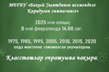 Вечер встречи выпускников МБОУ "Карадуванская гимназия имени Баки Зиятдинова" приглашает выпускников 1975, 1985, 1995, 2005, 2010, 2015, 2020 годом на Вечер встречи! Будем рады видеть Вас!
