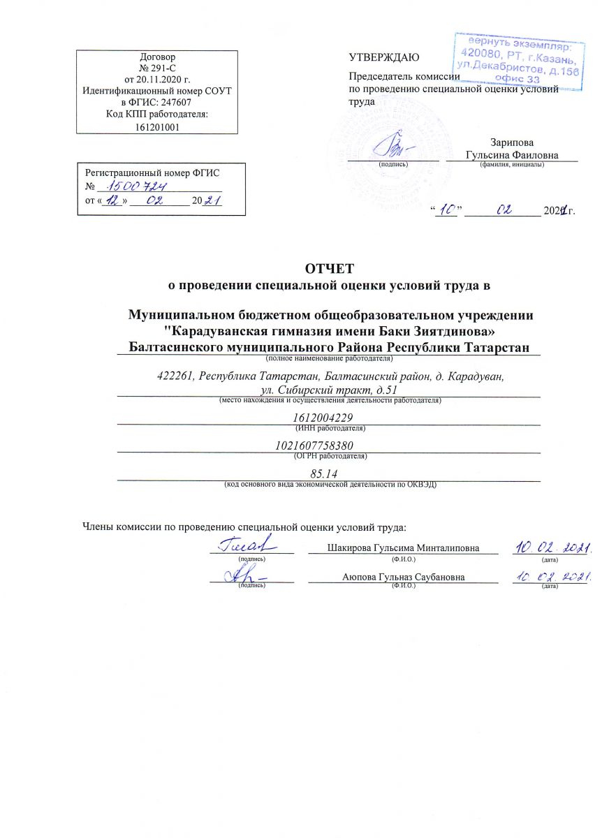 Муниципальное бюджетное общеобразовательное учреждение «Карадуванская гимназия имени Баки Зиятдинова» Балтасинского муниципального района Республики Татарстан / Татарстан Республикасы Балтач муниципаль районы муниципаль бюджет гомуми белем учреждениесе «Бакый Зыятдинов исемендәге Карадуган гимназиясе».
