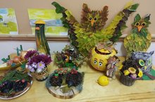 Ученики совместно с родителями сделали поделки. Укучылар көзге уңыштан поделкалар ясадылар.