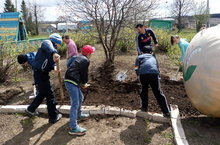Бакчада язгы эшләрне укучылар теләп башкаралар.